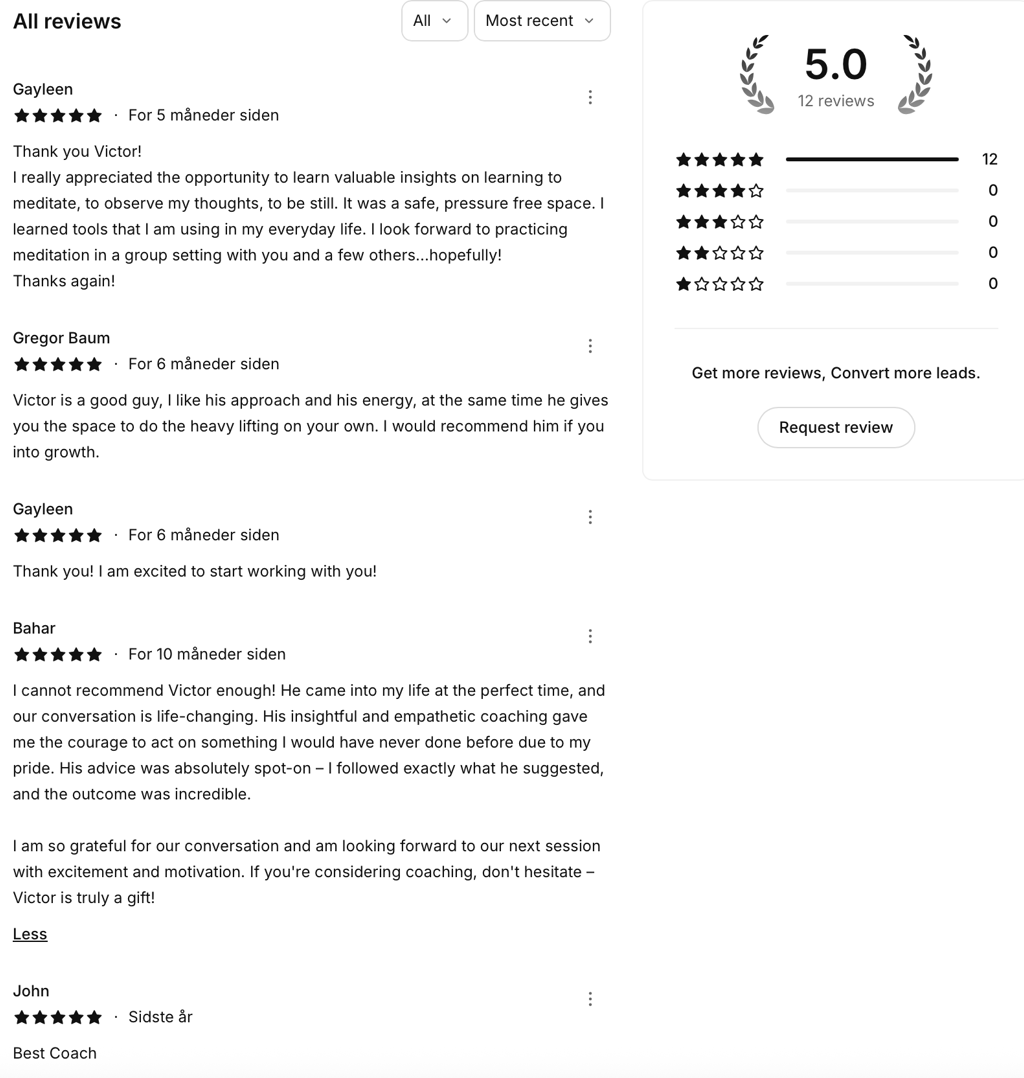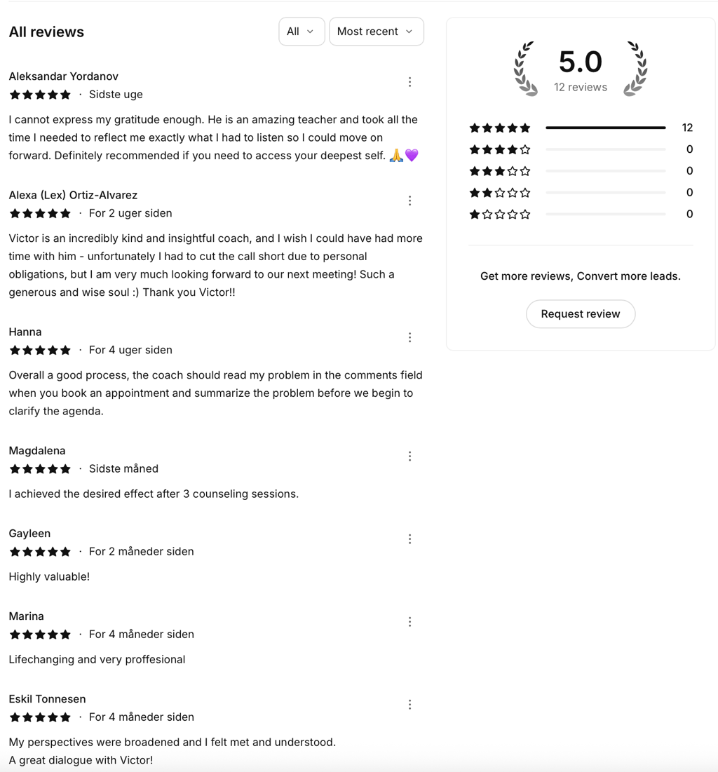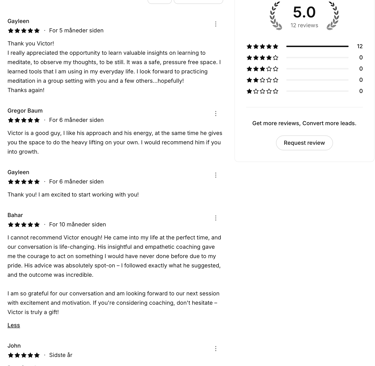 Victor’s coaching is direct, pushes me forward, and opens new perspectives